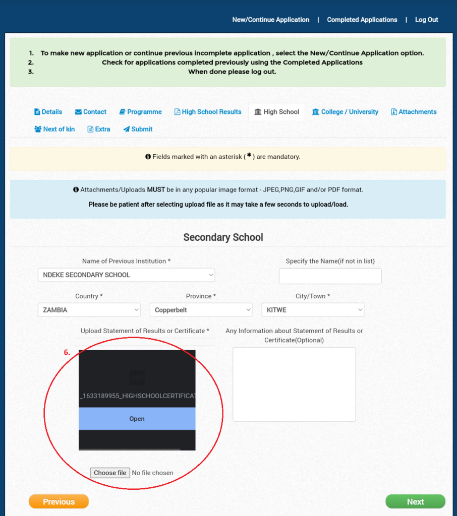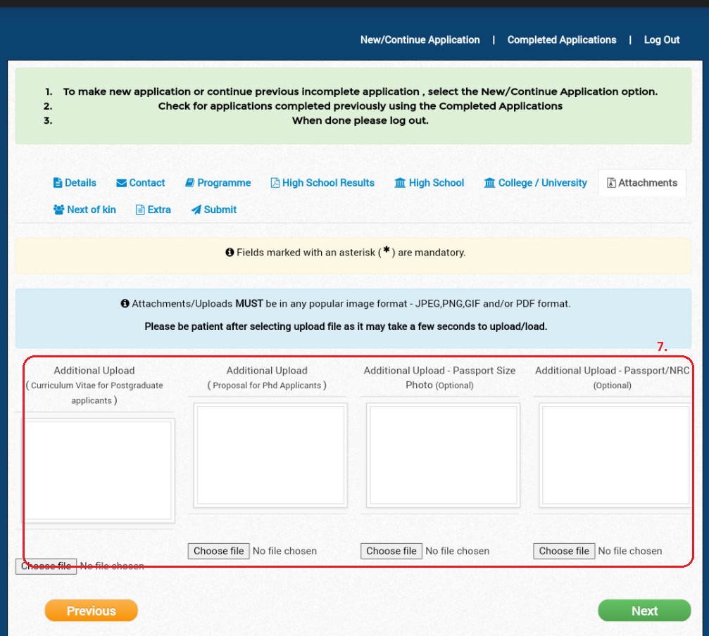 Online applications have the advantage that they can be done from anywhere without travelling to buy or submit a form. They can be filled in easily from anywhere provided there is internet connection. Also, the system is automatic and any information that is not entered correctly or any documents not submitted will not allow an applicant to complete the application. The system therefore ensures that the application is done correctly, and all applications submitted are thus valid and will be considered. The other advantage is that since they are automated, there is no chance that could choose a program that the university does not offer or will not be offering any more. The application fee is deposited into the institution’s account and a scanned copy of the deposit slip is uploaded into the system along with scanned copies of other required documents such as NRC, statement of results/certificate and passport size photos.