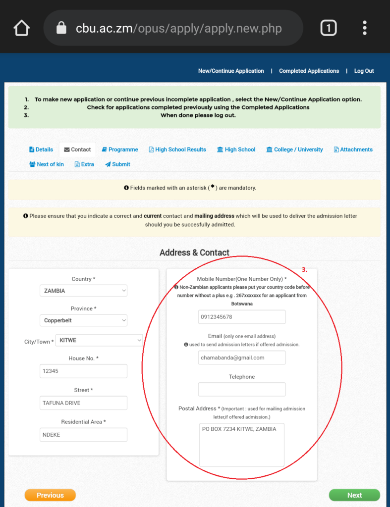 i) Email address and Phone number: The university will most likely contact you through email or phone. Make sure you indicate a working email address and phone number. If you do not have an email address, you can easily create one with Gmail by simply opening a google account. Google “how to open a google account” for instructions on how to go about this.