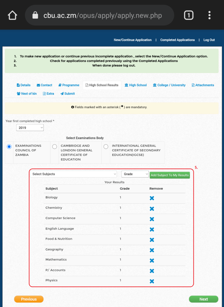 - Some online platforms may not include this part where you manually put your results. Make sure you put the correct results. Remember that the university or college will still ask you to upload your results. Therefore, this is just a copy for the system.