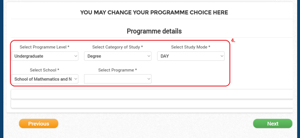 - These are the programmes you are applying for. Make sure you check that your desired programme is available for that year. It is not mandatory to put all three choices; you are free to put one, two or three.